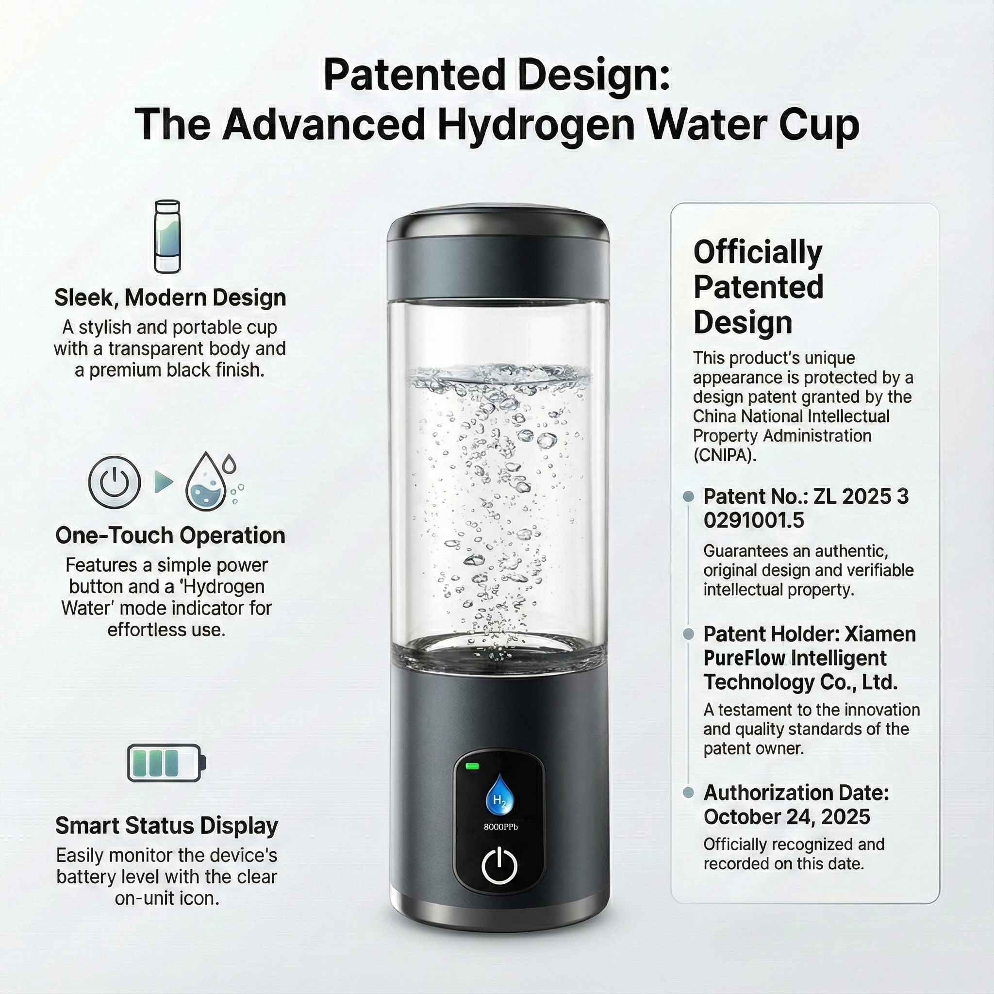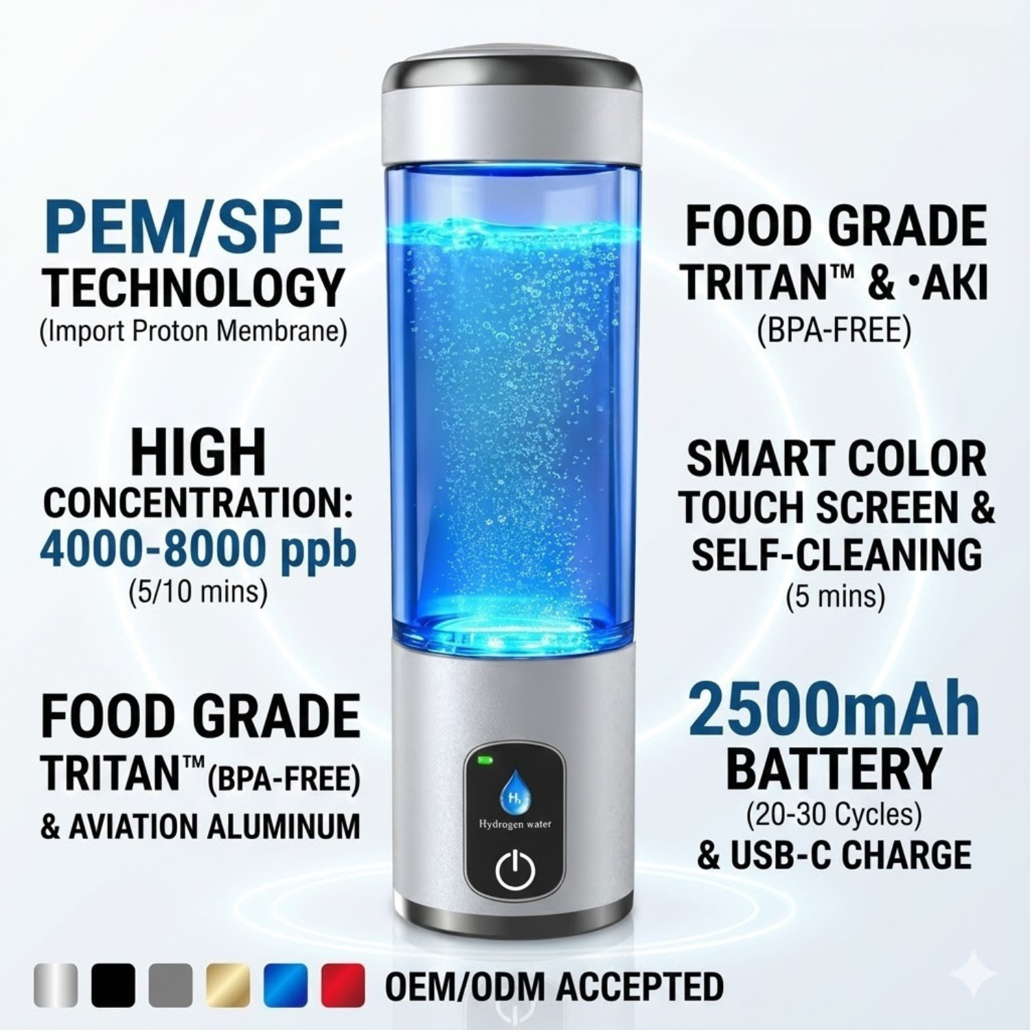 Высококачественный портативный интеллектуальный кувшин для получения воды, обогащенной водородом (8000 ppb), объемом 320 мл, с предохранительным клапаном и баллонами с водородом.