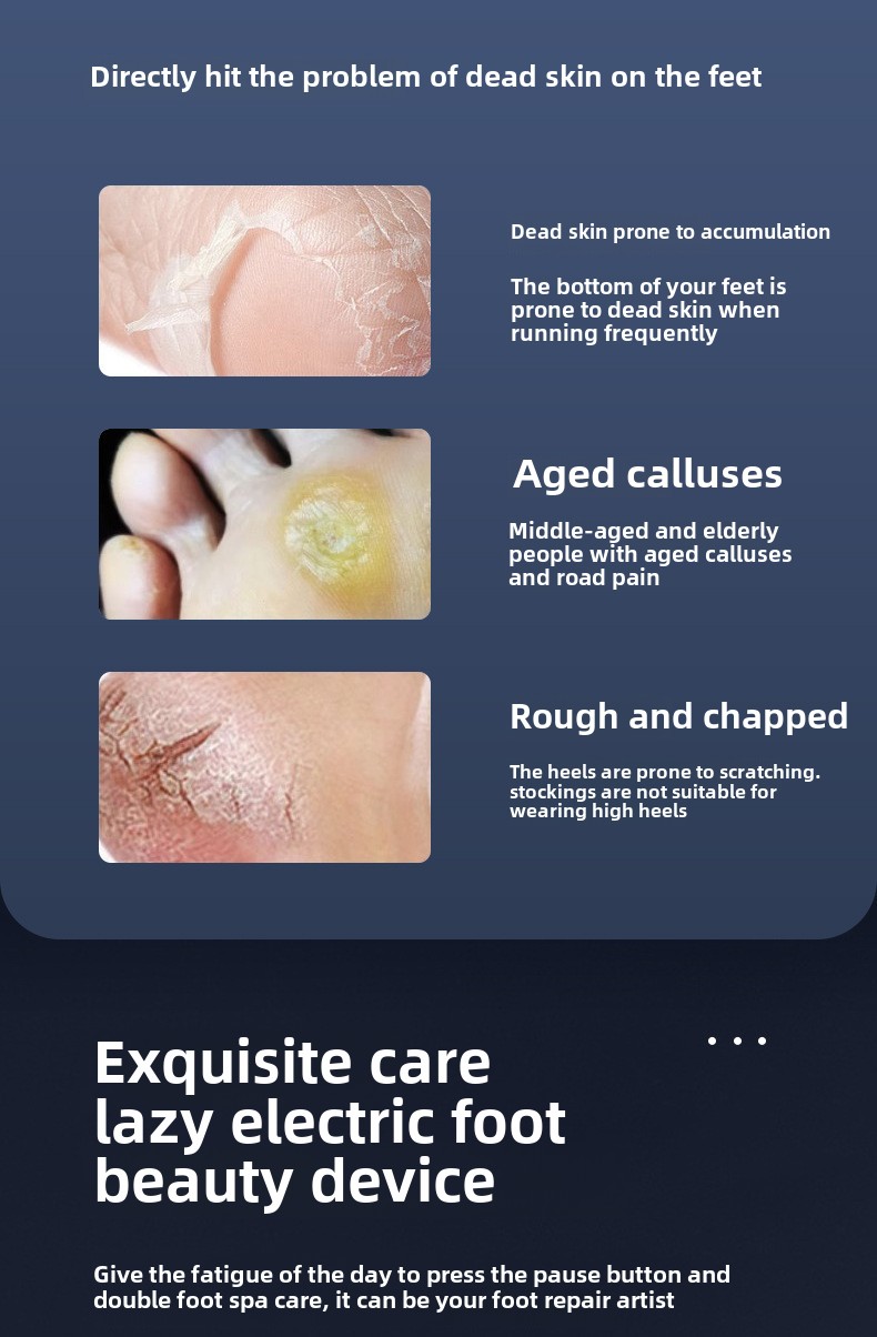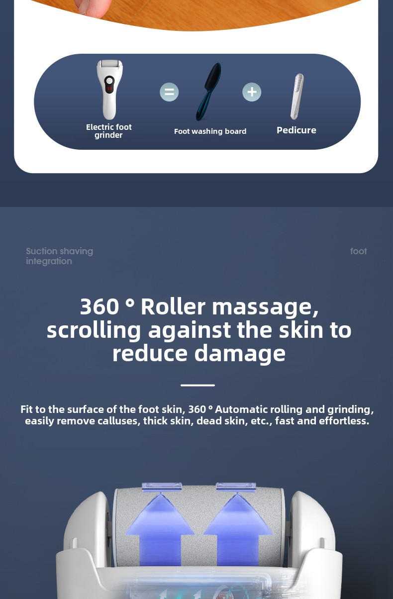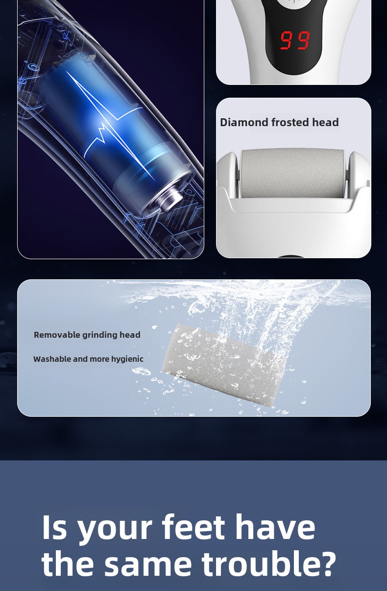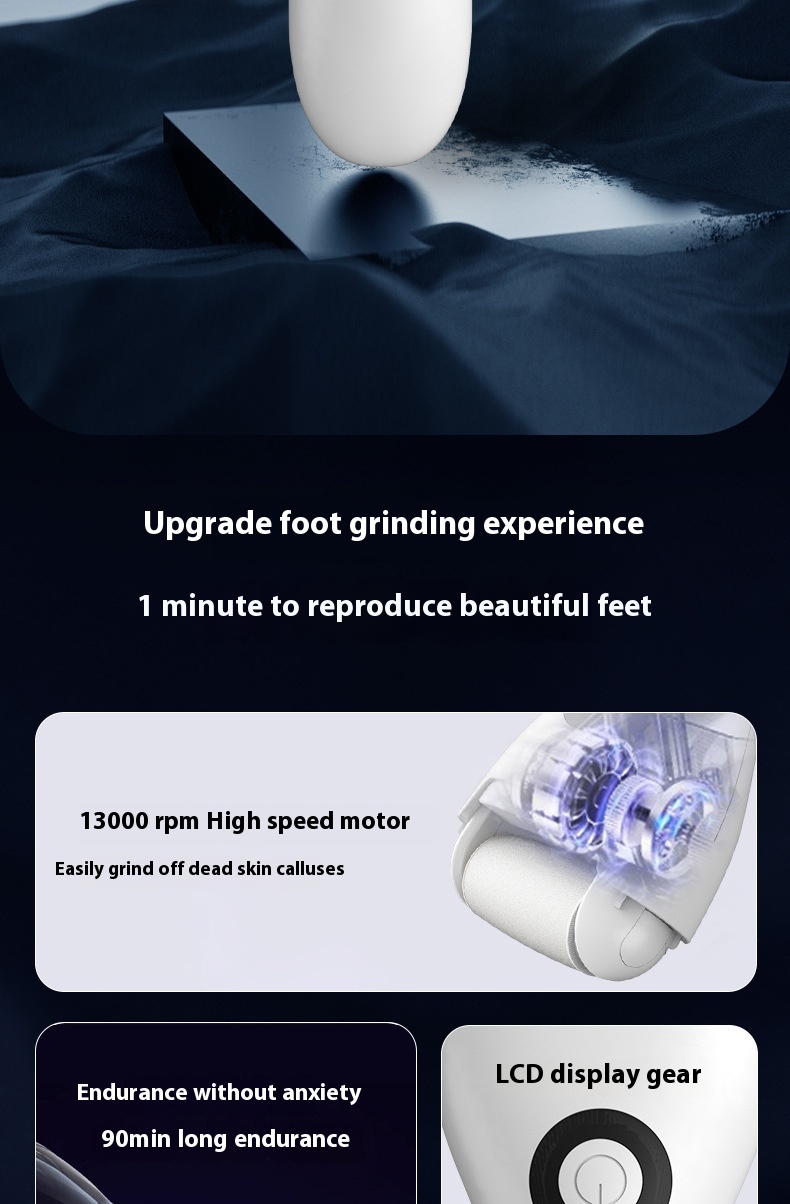 - Эффективное отшелушивание: оснащенный высокоскоростным двигателем со скоростью вращения 13 000 об/мин и вращающейся на 360° шлифовальной головкой, он быстро удаляет омертвевшую кожу, мозоли и огрубевшую кожу с ног, обновляя их внешний вид всего за 1 минуту.