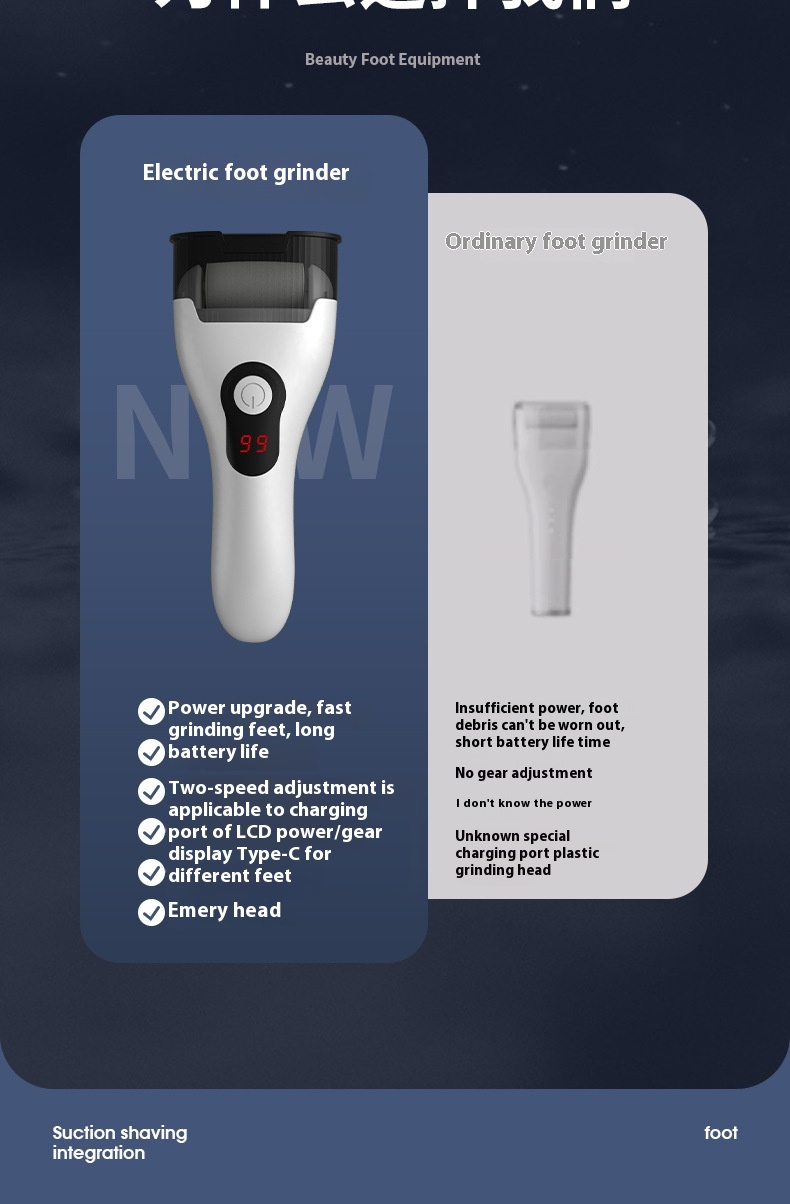 Электронная пилка для ног с ЖК-дисплеем, перезаряжаемая через Тип-C, для удаления омертвевшей кожи и мозолей, подходит для домашнего использования.